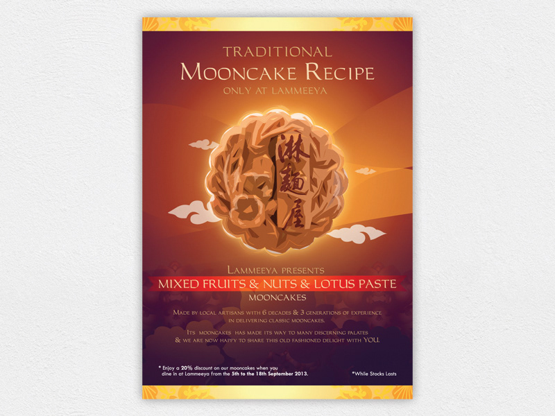 Mooncake poster design for Lammeeya restaurant. The brief is to create a traditional looking piece of poster, targeting towards the Chinese consumers.